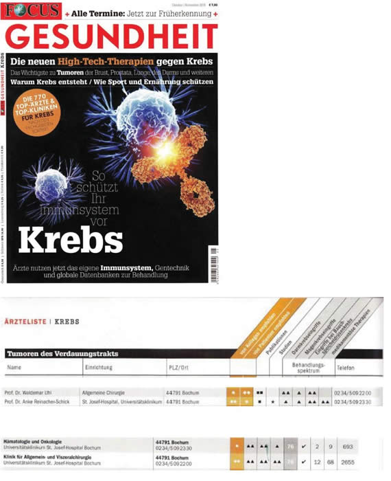 03.12.2019 - Die Krebstherapie hat seit vielen Jahren einen besonderen Stellenwert im Katholischen Klinikum Bochum (KKB). Schwerpunkt ist dabei das St. Josef-Hospital (Klinikum der Ruhr-Universität). Die hohe ärztliche und pflegerische Expertise wird nun erneut gewürdigt. Mehrere Mediziner und Abteilungen landen in den neuen Ärzte- und Kliniklisten des Magazins FOCUS auf den vorderen Plätzen.