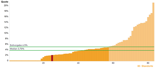 Rate der Wundinfektionen: liegt im Bochumer Pankreaszentrum mit 4% deutlich unter dem vorgegebenen und akzeptierten Bereich!